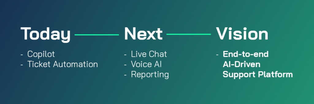 Production-ready does not mean finished. We still have clear plans to expand the system with additional AI-driven tools that can further elevate support operations. Today, KonradoAI covers deep integrations, agent copilot functionality and ticket-level automation. That is the foundation.